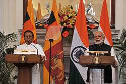 - ↑ "India to be Sri Lankan President Maithripala Sirisena's first foreign destination". The Economic Times. 10 January 2014. Retrieved 13 January 2014.