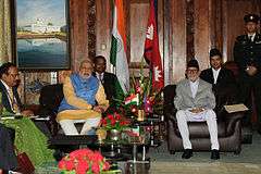 - 1 2 Harris, Gardiner (4 August 2014). "Visit From Indian Premier Signals a Political Shift in Nepal". The New York Times. Retrieved 6 August 2014.