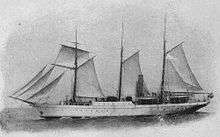 Southern Cross 4 (British Registry Official Number 98988) was a three-masted schooner, foremast, square-rigged, main and mizzen, fore-and-aft rig. 240 tons with auxiliary steam. The ship was built in Wivenhoe, Essex, England by Forrest & Sons in 1891 at a cost about £9,000, which was contributed by Bishop John Richardson Selwyn and others. This ship was in service from 1892 to 1902. When this vessel was sold, her engine was removed, and she operated as a cargo vessel around Australia and New Zealand until being lost with all hands off King Island, Tasmania in 1920.[5]