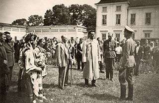 Immediately after entering Poland's territory, the Soviet army helped to set up "provisional administrations" in the cities and "peasant committees" in the villages in order to organize one-list elections to the new "People's Assembly of Western Ukraine". The elections were designed to give the annexation an appearance of validity, but were far from free or fair. The voters had a choice of only one candidate, often a local communist or someone sent to western Ukraine from Sоviet Ukraine [9] for each position of deputy; the communist party commissars then provided the assembly with resolutions that would push through nationalization of banks and heavy industry and transfers of land to peasant communities.[10] Elections took place on October 22, 1939; the official numbers reported participation of 93 percent of the electorate, 91 percent of whom supported the appointed candidates. Based on these results, the People's Assembly of Western Ukraine, headed by Kyryl Studynsky (a prominent academic and figure in the Christian Social Movement), consisted of 1,484 deputies. They met in Lwów on October 26–28, where they were addressed by Nikita Khrushchev and other representatives of the Ukrainian Soviet Socialist Republic. The assembly voted unanimously to thank Stalin for liberation and sent a delegation headed by Studynsky to Moscow to ask for formal inclusion of the territories into the Ukrainian SSR. The Supreme Soviet voted to do so on November 1, 1939 and on November 15 a law was passed making the former eastern Polish territories a part of the Ukrainian SSR.[3]