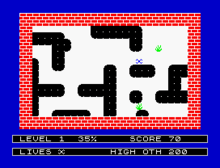 The ZX Spectrum version was released in 1983. In 1984 the Commodore 64 version was published, credited to Ian Andrew and S.Zodiac. The games was released for the Amstrad CPC in 1985, attributed to Ian Andrew and Paul Shirley, using some different colours from previous releases such as pink rather than white maze background. The SAM Coupé version was released in 1991, coded by Colin Jordan and using that machine's considerably more advanced audio capabilities in the game's background music.