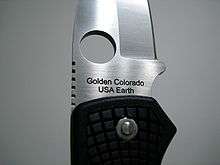 Spyderco was founded by Sal Glesser. The first product Spyderco produced was the Portable Hand in 1976, this "spider-shaped device", which gave the company its name, was a series of angles, ball joints and alligator clips that helped people such as jewelers and hobbyists to work with small parts. Spyderco's Founder, Sal Glesser, and his wife Gail, converted an old bread delivery truck into a motor-home and traveled to shows. As they became more successful, they graduated from the bread truck to a truck and trailer. They settled in Golden in November 1978. Spyderco began producing knife sharpeners in 1978 and produced their first folding knife, the C01 Worker, in 1981.[1][2] This knife was the first to feature a round hole in the blade designed for fast, one-handed and ambidextrous opening, which is now the company's trademark.[3] Additionally, the company claims that this was the first knife to feature a pocket clip on the right side of the handle.[4][5][6][7]