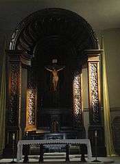 In 2002 and 2003, controversy followed after well-known consultant, Richard S. Vosko, was brought in to speak to the congregation about renovations to the church's interior.[6] Vosko's renovations in Detroit, San Antonio, and New Orleans had spawned controversy, and a book called "Ugly as Sin" had recently been published criticizing Vosko's work.[6] Concerns over modernization of St. Charles Borromeo's interior space led to the formation of the St. Charles Borromeo Preservation Guild. Guild supporters held protests with dozens of protesters falling to their knees outside the church and reciting the rosary asking the Virgin Mary to intercede to prevent modernization.[6] Among other things, the protesters sought to return the Blessed Sacrament to the tabernacle behind the altar and to preserve the private confessionals, the interior's "dark beauty," kneelers, the large, dramatic wooden crucifix and the baldacchino hanging above the cross.[6] The traditional look and feel of St. Charles had become a refuge for traditional Catholics who rejected the secular look of modern Catholic churches.[6] Pastor Robert Gallagher responded angrily to the protests. In the church bulletin, he claimed that most of the protesters were not parishioners and said it was insulting to suggest that it was the traditional trappings that attracted parishioners.[7] The protests drew widespread media attention, including two feature articles in the Los Angeles Times in April 2002 and June 2003.[6][7]