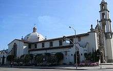 The parish was founded in 1921 with the purchase of an existing Methodist church structure at Weddington and Bakman.[1][2] The parish was known as Immaculate Conception Church until 1925 when it was renamed Saint Charles Borromeo.[1][2] Before the parish was established, Catholics in the central San Fernando Valley shared a priest with St. Robert Bellarmine (then known as Holy Trinity).[2] By 1936, the parish had outgrown the space on Weddington, and a parishioner named Goykes donated land on Moorpark.[1] A new church was built on Moorpark in 1937—the structure that is now the parish hall. The church had a seating capacity of 600 and was styled after the San Carlos Mission in Carmel, California.[1]
