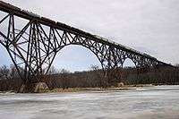 - Soo Line High Bridge north of Stillwater, Minnesota. This private, rail-only bridge is 2,682 feet (817 m) long and 184 feet (56 m) above the river. It roughly marks the northern limit of zebra mussel infestation in the St. Croix.[13]