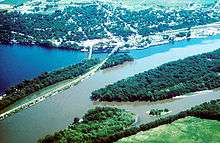 The St. Croix River (French: Holy Cross) is a tributary of the Mississippi River, approximately 169 miles (272 km) long,[1] in the U.S. states of Wisconsin and Minnesota. The lower 125 miles (201 km) of the river form the border between Wisconsin and Minnesota. The river is a National Scenic Riverway under the protection of the National Park Service. A hydroelectric plant at St. Croix Falls supplies power to the Minneapolis–St. Paul metropolitan area.