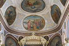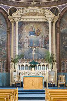 The St. Francis Xavier Church in the Downtown district of Missoula, Montana, is the tallest church in Missoula, and one of the tallest in the state (by height to roof). It is also the tallest church in Missoula County, Montana. It has paintings well over 100 years old, which were done by a brother of the Society of Jesus, a kitchen helper, who painted them in his spare time.[2] It is located at 420 West Pine Street.