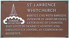St. Lawrence, Whitchurch, is a Church of England parish church church in Little Stanmore in the London Borough of Harrow, England. The building is Grade I listed.[1] It retains a stone tower dating from ca. 1360, but the main body of the building was constructed in the eighteenth century in Baroque style.