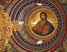 Christ Pantocrator-Almighty, Macedonian: Христос Седржител Fresco under the church dome
