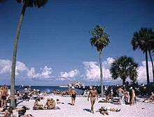 The former Municipal Pier was heavily damaged by the Tampa Bay Hurricane of 1921,[25] but in the aftermath the city of St. Petersburg appropriated a $1 million bond for a new structure. This was dedicated on Thanksgiving Day in 1926 as the Million Dollar Pier, a Mediterranean-style casino that included an observation deck, an open-air ballroom, and a spacious interior atrium for card games and community events. The building's entrance portico was later enclosed as WSUN-TV’s studios, from which "Captain Mac" broadcast his children’s show in the 1950s.[24] George Snow Hill painted a picture of pier goers at the Million Dollar Pier.[26] By 1967, the Million Dollar Pier was demolished.[27]