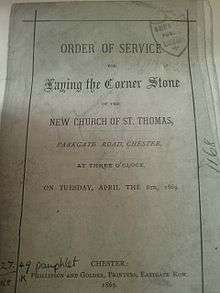 - ↑ St Thomas of Canterbury, Chester, Church of England, retrieved 14 July 2010