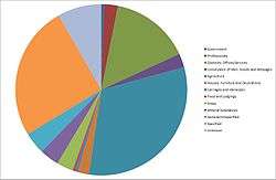 Since the 1881 census report, Standon has seen a shift in occupational employment in the 2011 census report. The 2011 census report shows that the most common profession is Human Health and Social Work with 78 persons employed in this field. In comparison, the 1881 census states the most common profession was agriculture with 31 persons employed in this field.[16] In comparison, modern day Standon only has 35 persons employed in agriculture.