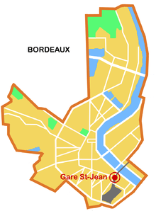 The station is located on Charles Domercq road in Bordaeaux across from Gare de Bordeaux Saint-Jean.