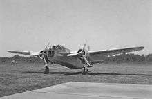 The X-100, designated XA-21 following purchase by the Army Air Corps, was a twin-engined high-winged monoplane of all-metal construction.[1] It featured an unusual cockpit arrangement, much like those on most German World War II bombers designed during the war years, with a streamlined greenhouse canopy enclosing both the pilot and bombardier stations.[2]