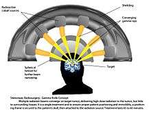Stereotactic radiosurgery is a distinct neurosurgical discipline that utilizes externally generated ionizing radiation to inactivate or eradicate defined targets in the head or spine without the need to make an incision.[3] This concept requires steep dose gradients to reduce injury to adjacent normal tissue while maintaining treatment efficacy in the target.[4] As a consequence of this definition, the overall treatment accuracy should match the treatment planning margins of 1-2 millimeter or better.[5] To use this paradigm optimally and treat patients with the highest possible accuracy and precision, all errors, from image acquisition over treatment planning to mechanical aspects of the delivery of treatment and intra-fraction motion concerns, must be systematically optimized.[6] To assure quality of patient care the procedure involves a multidisciplinary team consisting of a neurosurgeon, radiation oncologist, medical physicist, and radiation therapist.[7][8] Dedicated, commercially available stereotactic radiosurgery programs are provided by the respective Gamma Knife,[9] CyberKnife,[10] and Novalis Radiosurgery[11] communities.[12]
