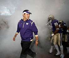 The University of Washington introduced Sarkisian as its 23rd head football coach during a press conference in the Don James Center at Husky Stadium on December 8, 2008.[8] Sarkisian signed a contract that paid him $1.75 million in 2009, with a salary increasing to $2.3 million by 2013.[9] Down in Los Angeles, John Morton succeeded Sarkisian as offensive coordinator at USC.[10]