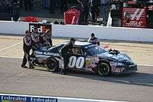 What is now the No. 14 car debuted in 2002 as the No. 60, a fifth car for Hendrick Motorsports with Gene Haas listed as the owner. Hendrick's Busch Series driver Jack Sprague attempted six races (making three) in preparation for running full-time with Haas.[4][5] His best finish was 30th in the season finale race at Homestead-Miami.[24] Though Sprague and Haas ran the No. 0 Pontiac full-time, the No. 60 Chevy returned in 2003 under the Hendrick banner with driver David Green. The car was sponsored by Haas Automation, with co-sponsorship from Hendrick sponsor Kellogg's and Haas CNC sponsor NetZero. The car initially attempted only the restrictor plate races, missing their first two attempts, and finishing 32nd and 35th at the second Daytona and Talladega races respectively. The No. 60 would run full NetZero decals at Talladega after the No. 0 missed the race.[25][26] The next race the No. 60 tried out was the 2003 fall race at Charlotte, with Brian Vickers making his debut in a red and black Haas car before moving to Hendrick's No. 25 car full-time.[27] He qualified 20th and finished 33rd.
