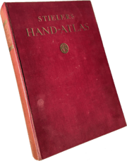 Stielers Handatlas (after Adolf Stieler, 1775–1836), formally titled Hand-Atlas über alle Theile der Erde und über das Weltgebäude (Handy atlas of all parts of the world and of the universe), was the leading German world atlas of the last three decades of the 19th and the first half of the 20th century. Published by Justus Perthes of Gotha (established 1785 and still existing there) it went through ten editions from 1816 to 1944. As with many 19th century publications, an edition was issued in parts; for example, the eighth edition was issued in 32 monthly parts.