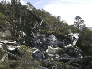 A Beech King Air of Partnair landed short of the runway on 13 March 1987 after being subject to a sudden downdraft. None of the seven people on board were injured, although the plane was written off.[85]