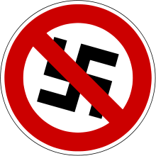 In 2005, a controversy was stirred about the question whether the paragraph should be taken to apply to the display of crossed-out swastikas as a symbol of anti-fascism.[13] In late 2005 police raided the offices of the punk rock label and mail order store "Nix Gut Records" and confiscated merchandise depicting crossed-out swastikas and fists smashing swastikas. In 2006 the Stade police department started an inquiry against anti-fascist youths using a placard depicting a person dumping a swastika into a trashcan. The placard was displayed in opposition to the campaign of right-wing nationalist parties for local elections.[14]