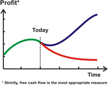 The debate about the relative influence of industry and business factors on performance, and the RBV-based explanations for superior performance both, however, pass over a more serious problem. This concerns exactly what the ‘performance’ is that management seeks to improve. Would you prefer, for example, (A) to make $15m per year indefinitely, or (B) $12m this year, increasing by 20% a year, starting with the same resources?