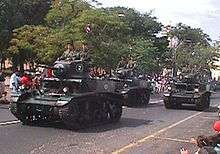 M3A3s were used by British forces in Indonesia during the Indonesian National Revolution, where they suffered heavy losses due to the Stuart's thin armour plating.[28] They were used until 1946, when the British left. The M3A3s were then passed on to the KNIL, which used them until the end of the fighting before passing on the tanks to the Indonesian National Army. The tank saw action during the DI/TII rebellions in Aceh and Java, RMS rebellions in South Maluku, PRRI rebellions in Sumatra, Permesta rebellions in Northern Sulawesi and the fighting against the 30 September movement.[29]