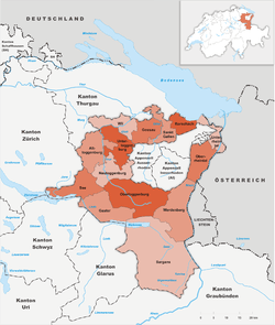 The Canton of St. Gallen until 2002 was divided into 14 districts (German: Bezirke). On 1 January 2003 they were abolished and the canton was divided into 8 constituencies (German: Wahlkreise).