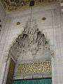 The interior decoration is subtle, with very restrained use of Iznik tiles. The white marble mihrab and mimbar are also simple in design, and woodwork is restrained, with simple designs in ivory and mother of pearl.