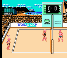 In the NES version, there are three different tournament modes: Exercise, the American Circuit and the World Cup. The Exercise Mode is just a match against the first team in a crowd-less court set to an easy difficulty. The American Circuit simply consists of the first five teams featured in the Famicom version's tournament mode set to an average difficulty. The World Cup mode consists of seven teams in the following order: Japan, Italy, Australia, Mexico, Brazil, the Navy and USSR, all set to a hard difficulty. The background for the Russian stage was also redrawn to make it look less hostile with the omission of the tanks in the Famicom version. There is no difficulty setting in the option menu since the three different tournament modes serve as difficulty settings themselves.
