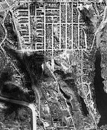 By the 1880s, the area south of Bloor was known as 'Windermere' after England's 'Lake District' which it is said to have resembled.[5] To the south, industry developed on Coe's land along the railway line, including the Ontario Bolt Works, just east of the Humber, which replaced a factory on the site of today's streetcar yards at Roncesvalles. Built in 1882, its cornerstone laying attended by Sir John A. Macdonald,[6] the factory lands extended north to today's Morningside Avenue. In 1889, the factory was bought by James Worthington and the name changed to Swansea Works, Worthington himself being from the Swansea area of Wales. The factory became the major employer in the area with subsidiary industrial lands to the north of today's The Queensway. A settlement of workers' cottages built by Worthington dating from the 1880s grew around the plant.[5] The factory, burnt down in 1906 and rebuilt, became part of Stelco in 1910, and it remained in operation until 1989.