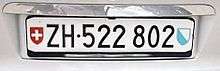 Zürich number plate with Swiss coat of arms on left and Zurich coat of arms on right.