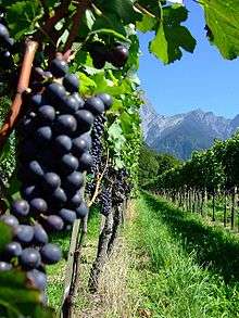 Other grapes grown in Switzerland include hybrid varieties like Muscat bleu which had 3 hectares (7.4 acres) in cultivation for commercial winemaking 2009.[6]