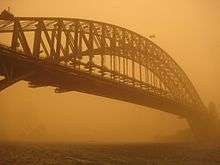The Bureau of Meteorology has reported that 2002 through 2005 were the warmest summers in Sydney since records began in 1859.[79] The summer of 2007–08, however, proved to be the coolest since 1996–97 and is the only summer this century to be at or below average in temperatures.[80] In 2009, dry conditions brought a severe dust storm towards eastern Australia.[81][82] The average annual temperature of the sea is above 21 °C (70 °F), and the monthly average ranges from 18 °C (64 °F) in July to 24 °C (75 °F) in January.[83][84]
