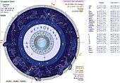 The Synoptical horoscope has its own unique way of drawing: we can view the tropical signs inside of the chartwheel, the Sidereal Zodiac is in the middle and the real Constellations can be found in the outermost zone.[2]