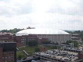 Built in 1980, the Carrier Dome is a 49,250-seat domed sports stadium located on the campus of Syracuse University. It is both the largest domed stadium on a college campus and the largest domed stadium in the Northeast. It is home to the Syracuse Orange football, basketball, and lacrosse teams. With regard to basketball, it holds another title, being the largest on-campus basketball arena, with a listed capacity of 33,000. This limit has been exceeded several times. The Dome sold an on-campus NCAA record of 35,446 tickets for a game against the Duke Blue Devils on February 1, 2014. The previous record was set on February 23, 2013 against the Georgetown Hoyas, with 35,012 in the stands.