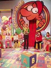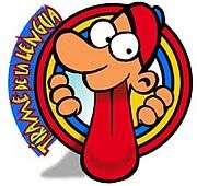 Tirame de la Lengua (Make Me Speak or, literally, Pull Me From the Tongue) is a TV Show transmitted by Televisión Española (TVE) and TVE Internacional. The teams are the Lenguetazos and Lenguetones. Children between 9 and 12 years old participate, and slide down an enormous tongue. During the half hour show, the contestants play games like Letter Soup and Trabalenguas (tongue twisters) with a lollipop in their mouths. An animated Cervantes judges the results of the teams.