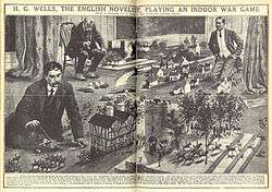 H.G. Wells' books Floor Games (1911) and Little Wars (1913) were attempts to codify rules for fighting battles with toy soldiers (miniatures), and make them available to the general public. They were very simple games, and in some ways just provide a context for shooting spring-loaded toy cannons at toy soldiers, but "in his Appendix to Little Wars, Wells speaks of the changes required to convert his admittedly simplistic rules into a more rigorous Kriegspiel."[5] However, Wells also states in his rules that combat "should be by actual gun and rifle fire and not by computation. Things should happen and not be decided," in opposition to the general nature of Kriegspiel play.