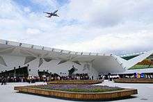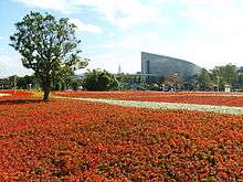 The expo was divided up between four major areas: Yuanshan Park, Taipei Artist Park, Xinsheng Park and Dajia Riverside Park.[4] It has 14 pavilions and occupies an area of 91.8 hectares (0.918 km2).[5] Each area was also covered with many outdoor gardens, including a Global Garden Area (featuring exhibits from the United States, Greece, the Netherlands, Thailand, Bhutan, Hawaii, Belau, Hong Kong, Japan and more), a Fujian-Style Garden, and a Sea of Flowers.[12] In addition, it features more than 800 varieties of orchids, 329 million locally developed plant varieties, and award-winning landscape and gardening designs from 22 countries.[6] The expo was based on several major design concepts:[5][13]