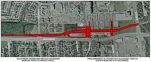 The station will be adjacent to the new grade-separated transitway, and will likely require a tunnel underneath Tallwood Drive, as part of the construction includes storm sewer and watermain relocation.[2] The station will also include an exit from the Transitway extension to Tallwood Drive for local buses or buses that currently travel to/from Baseline Station via Meadowlands Drive, such as routes 86B, 111, and 178.