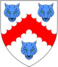 Arms of Copleston: Argent, a chevron engrailed gules between three leopard's faces azure