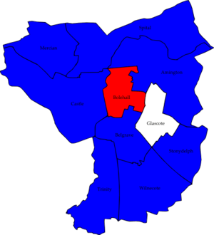 Map of the results of the 2007 Tamworth council election. Conservatives in blue, Labour in red and independent in white.
