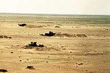 - ↑ Scales, page 269: "As TF 1-37th Armor crossed over the ridge into the heart of the Iraqi defensive zone, the Iraqi commander's carefully disposed rear-slope defense stripped Dyer's tanks of their range advantage. Within 1,000 meters, a row of dug-in T-72s and BMPs suddenly appeared below the crest. All were hull-down in prepared positions behind thick dirt walls. Now the Americans were well within Iraqi killing range, and although the Soviet-made night sights were markedly inferior, things could still get very dicey."