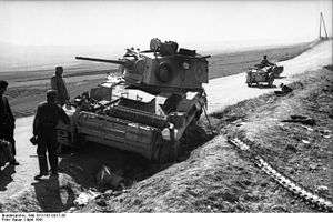The A9 Cruiser Mk I was an effective tank in the French, Greek and early North African campaigns. The 2-pounder gun was better than comparable 37 mm weapons of Germany and the US, and lethal against tanks encountered during the North African campaign. However the minimal armor made the A9 vulnerable to most contemporary anti-tank weapons and the design was quickly superseded by the A10 Cruiser, Mark II.[17]