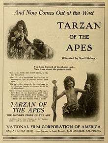 Tarzan of the Apes is a 1918 American action/adventure silent film directed by Scott Sidney starring Elmo Lincoln, Enid Markey, George B. French and Gordon Griffith. It was the first Tarzan movie ever made and is based on Edgar Rice Burroughs' original novel Tarzan of the Apes. The movie adapts only the first part of the novel, the remainder becoming the basis for the sequel, The Romance of Tarzan. The film is considered the most faithful to the novel of all the film adaptations. Its most notable plot change is the introduction of the character Binns and his role in bringing the Porters to Africa; the novel brought them there through the improbable coincidence of a second mutiny.