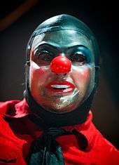 The band has said the idea of wearing masks stemmed from a clown mask that Crahan took to rehearsals when the band first started. Crahan later became known for his clown masks, adopting the pseudonym "Shawn the Clown".[6] The concept developed; by late 1997, the band decided every band member would wear a unique mask and matching jumpsuit.[139] Taylor said in 2002, "it's our way of becoming more intimate with the music. It's a way for us to become unconscious of who we are and what we do outside of music. It's a way for us to kind of crawl inside it and be able to use it."[140] The concept of wearing matching jumpsuits has been described as a response to commercialism in the music industry and led to the idea of assigning the band members numerical aliases. According to Taylor, "Originally, we were just going to wear the jumpsuits ... we figured we might as well take that further and number ourselves ... We were basically saying, 'Hey, we're a product!'".[141]