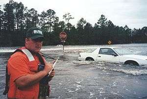 Water flowing over Old Hwy 67 and MS 15 near their intersection in Harrison County on September 29, 1998 during the September 1998 flooding caused on the Tchoutacabouffa River by Hurricane Georges.