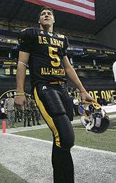 During his senior season he led the Nease Panthers to a state title, earned All-State honors, was named Florida's Mr. Football and a Parade magazine high school All-American, and repeated as Florida's Player of the Year.[23][24] He played in the U.S. Army All-American Bowl in San Antonio, Texas which featured the top 78 senior high school football players in the nation and was shown nationally on NBC television.[25]