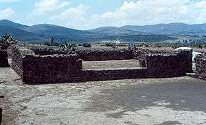 Tecoaque includes a prominent circular structure dedicated to Ehecatl.[1] Parts of this primary three-tiered structure were restored in 1992, which has an eastern facing stairway. Nearby archaeological features include residential structures and an important rectangular plaza.[2]