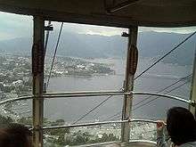 The Tenjō-Yama Park Mt. Kachi Kachi Ropeway (天上山公園カチカチ山ロープウェイ Tenjōyama Kōen Kachikachiyama Rōpuwei), officially the Lake Kawaguchi Mt. Tenjō Ropeway (河口湖天上山ロープウェイ Kawaguchiko Tenjōyama Rōpuwei), is a Japanese aerial lift line in Fujikawaguchiko, Yamanashi, operated by Fuji Kyuko. Opened in 1959, the line climbs Mount Tenjō from the shores of Lake Kawaguchi, one of the Fuji Five Lakes. The line name comes from Kachi-kachi Yama (lit. "Mt. Kachikachi"), a folktale which took place on the mountain. The observatory has a view of the lake, as well as Aokigahara forest, and Mount Fuji.