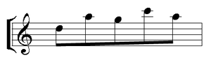 Tetratonic music was noted as common in Polynesia and Melanesia.[11] On Guadalcanal in particular, anhemitonic pentatonic and tetratonic scales are the predominant types, although the minor second does nevertheless occasionally appear as a melodic interval. The most often used melodic intervals, however, are the major second, minor third, perfect fourth, perfect fifth, and octave.[12]